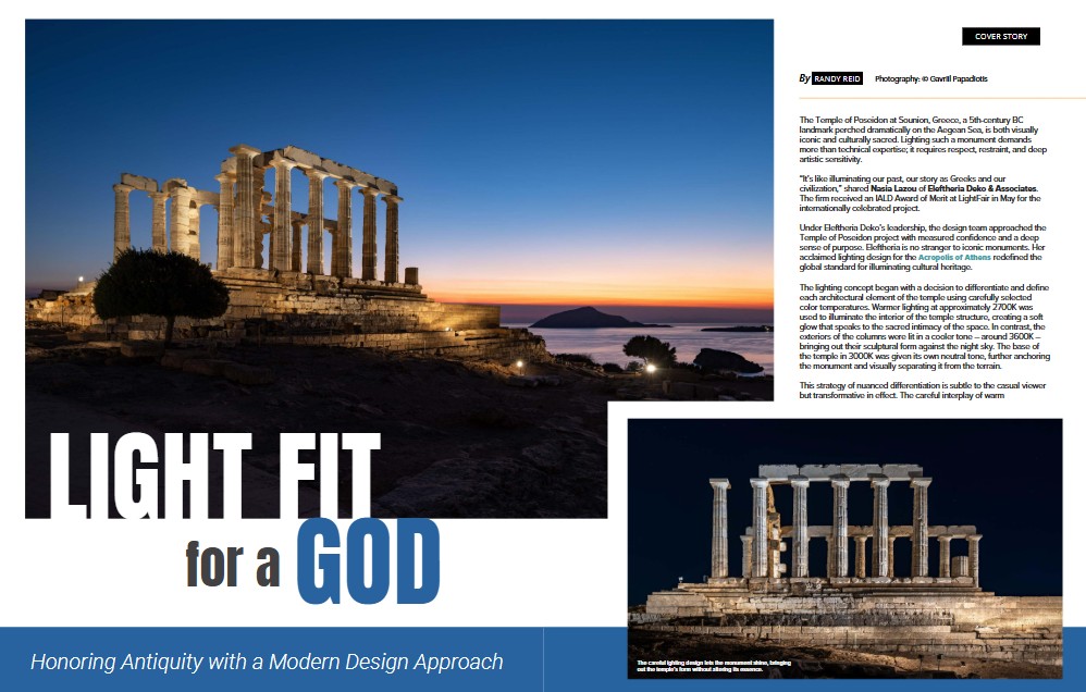 We are thrilled to announce that the Temple of Poseidon, Greece is featured on the June 2025 cover of Designing Lighting magazine.
